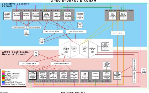 Until the acquisition of the IBM SP, for the most part storage for ARSC users was on the machine on which they did their processing. Users loved it. But now ARSC has 5 major HPC systems of 3 different manufacturers and will soon have two more major systems. Given this, we believe it is time to separate the storage from the compute so that the newer compute technologies can come and go without impacting the storage infrastructure.